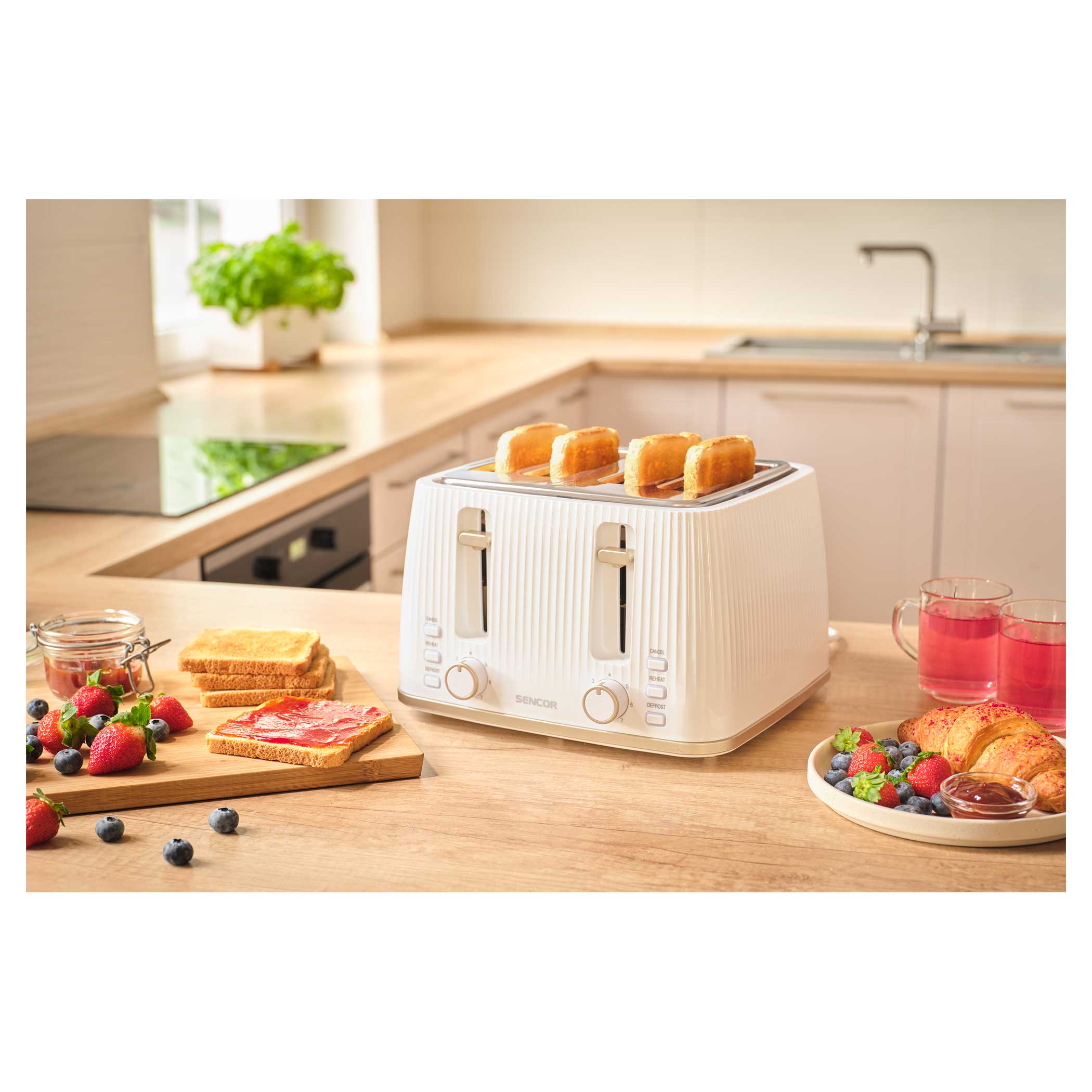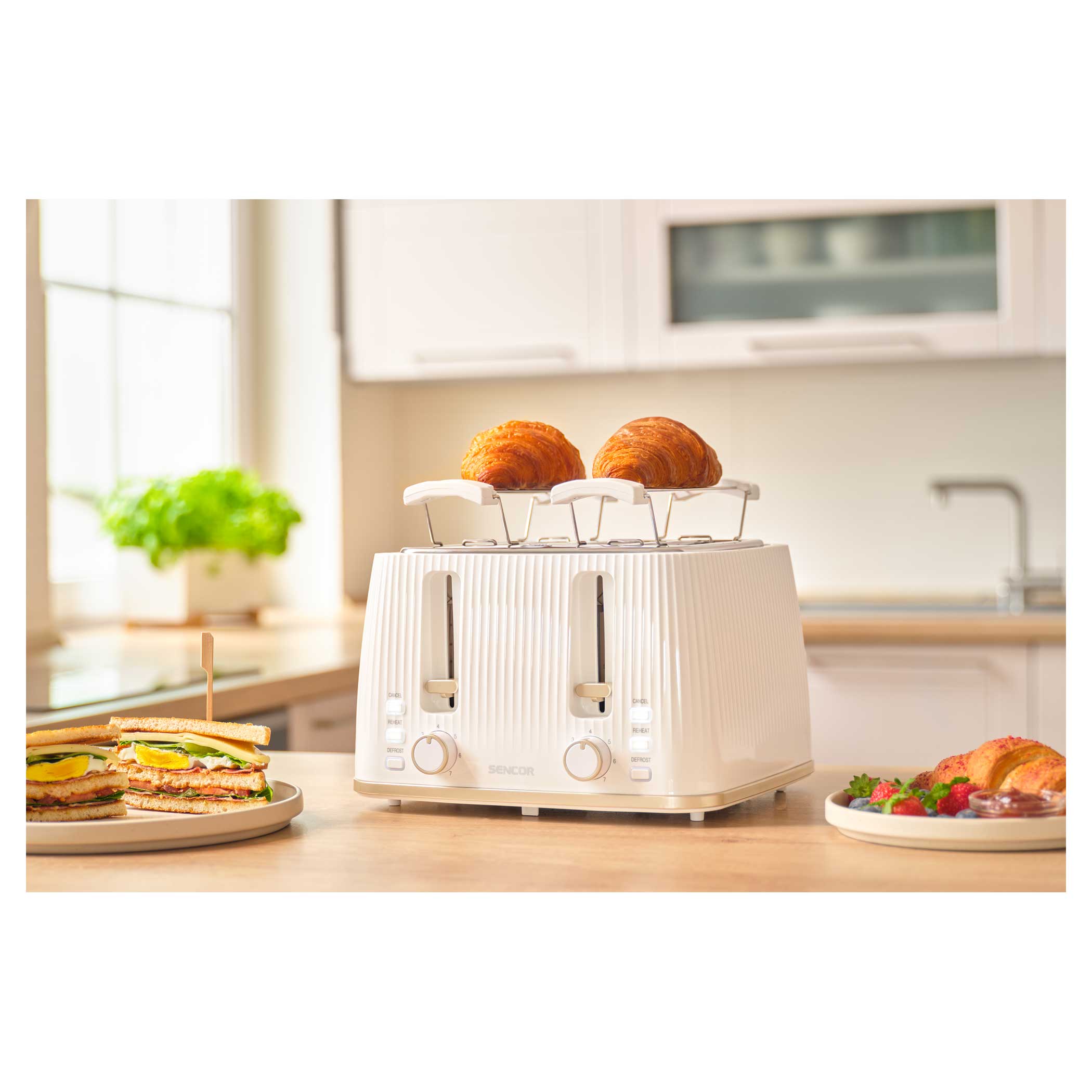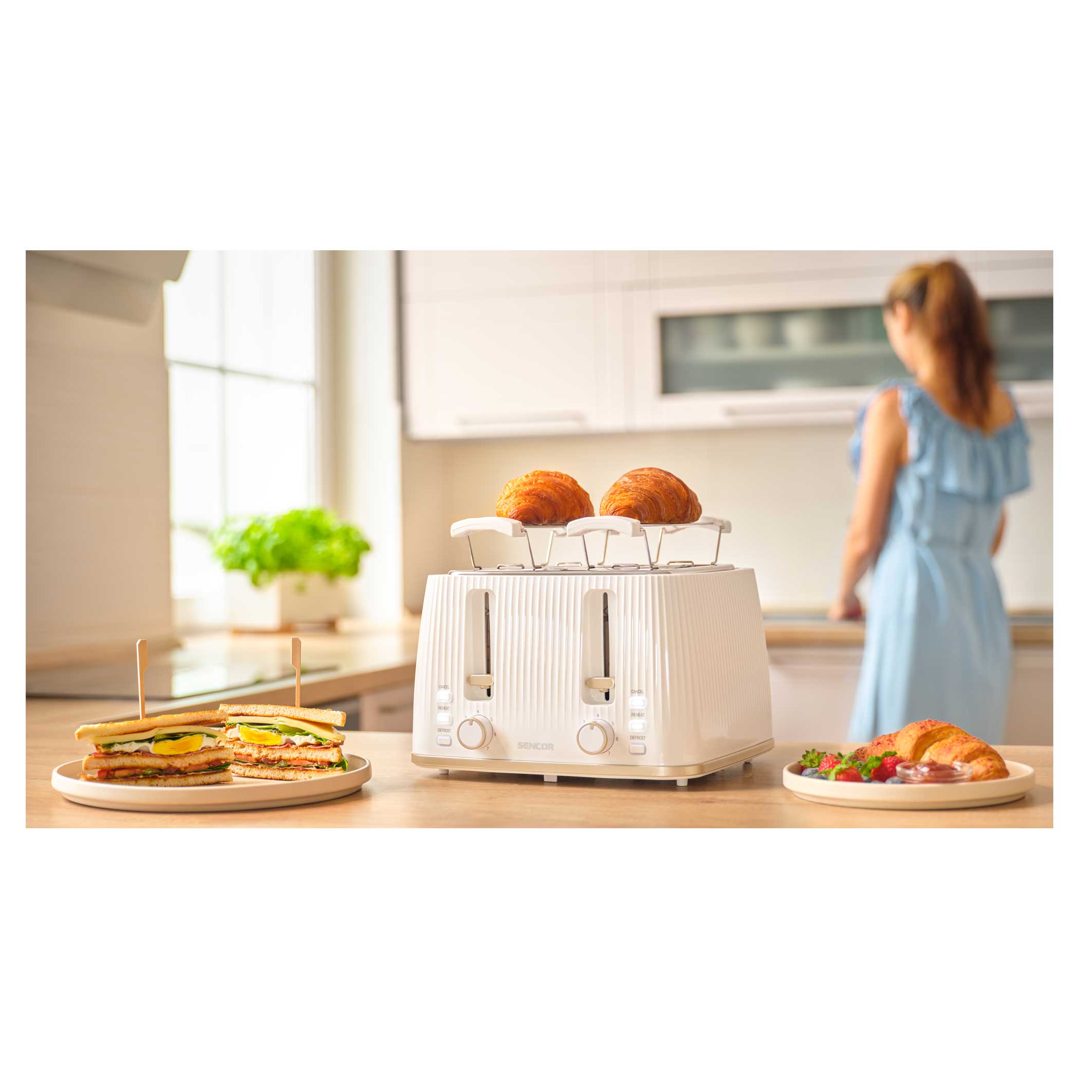 С помощью тостера вы легко сможете приготовить тосты в точном соответствии с вашими предпочтениями благодаря 7 уровням интенсивности поджаривания и 4 ячейкам для тостов. Вы можете использовать решетку для тостов для поджаривания разных видов хлеба. Благодаря 3 функциям тостер разогревает, поджаривает и размораживает хлеб. При необходимости предусмотрена функция мгновенной остановки.• 4 ячейки для тостов